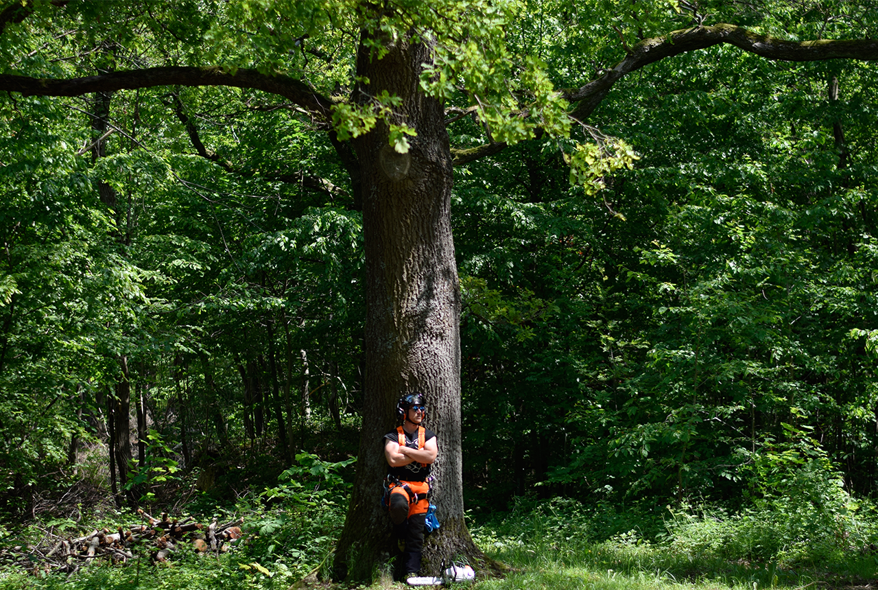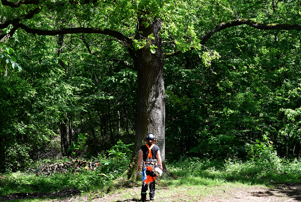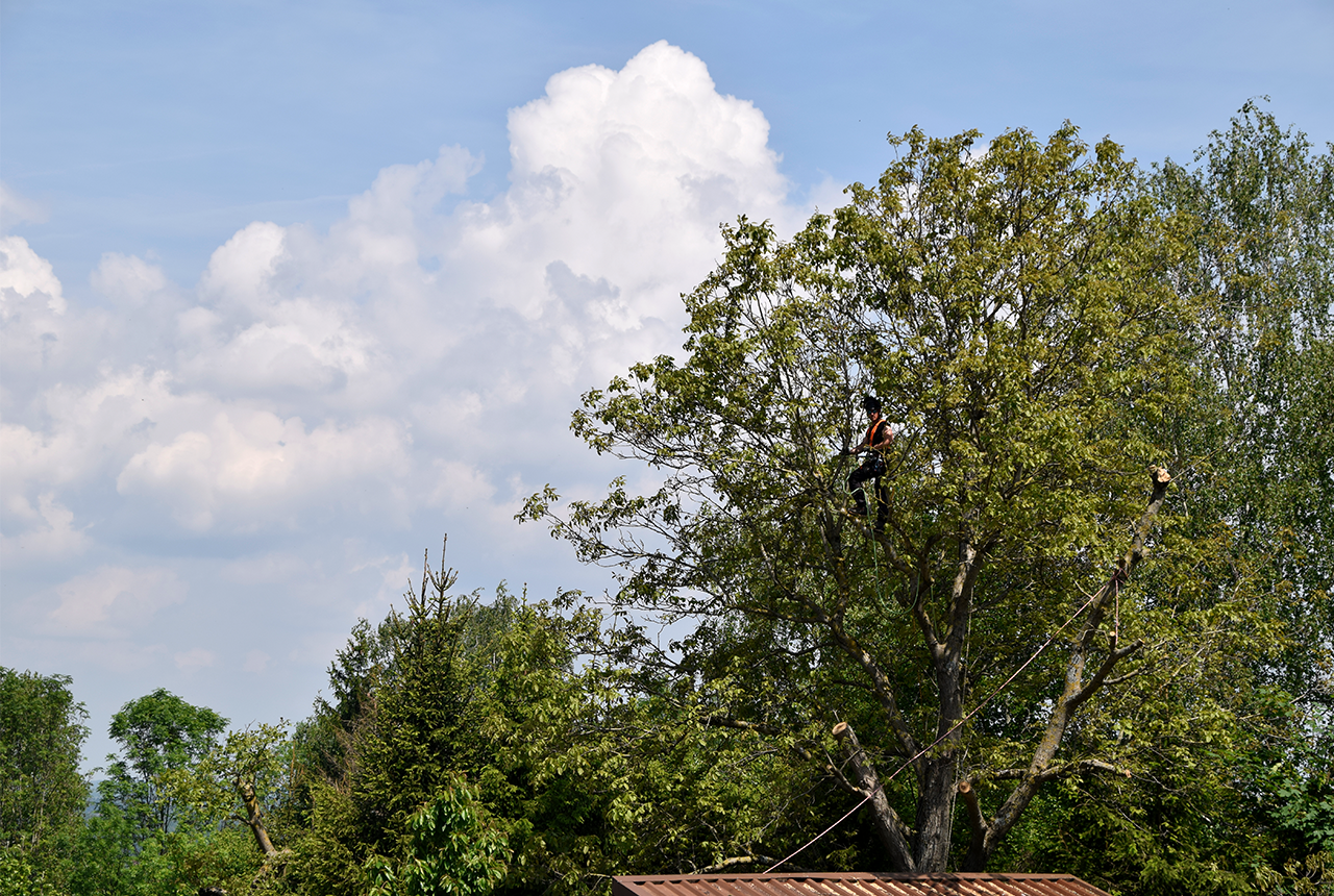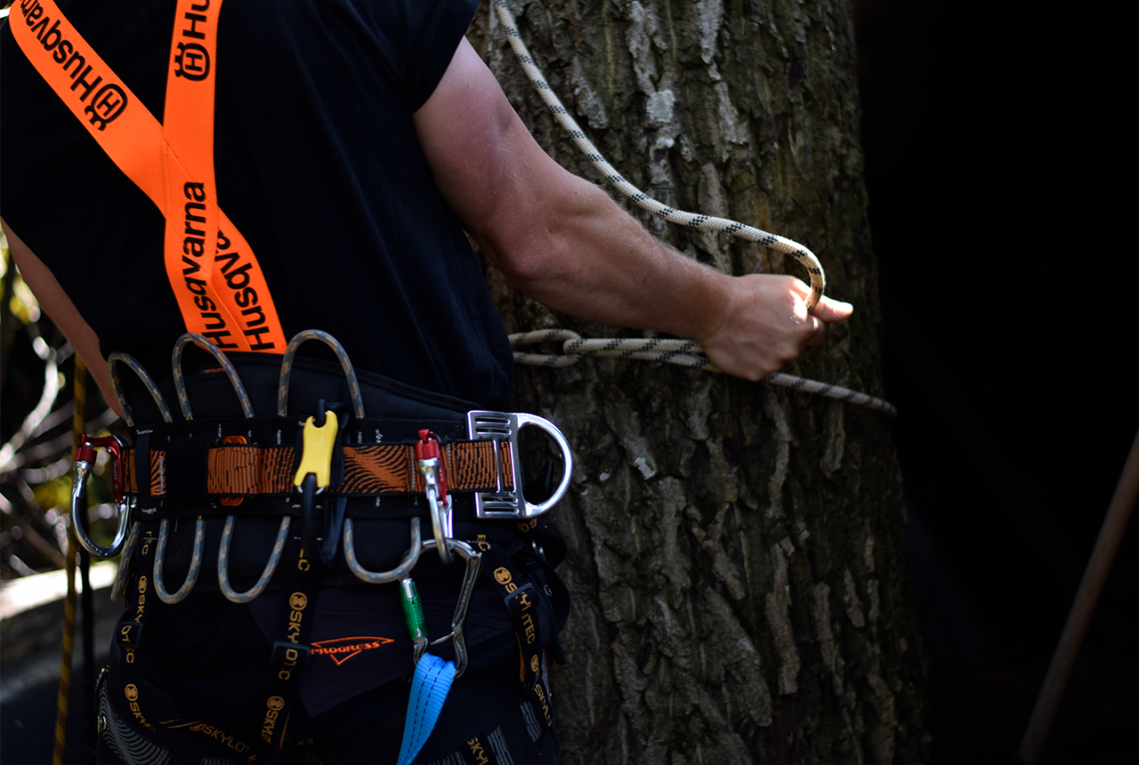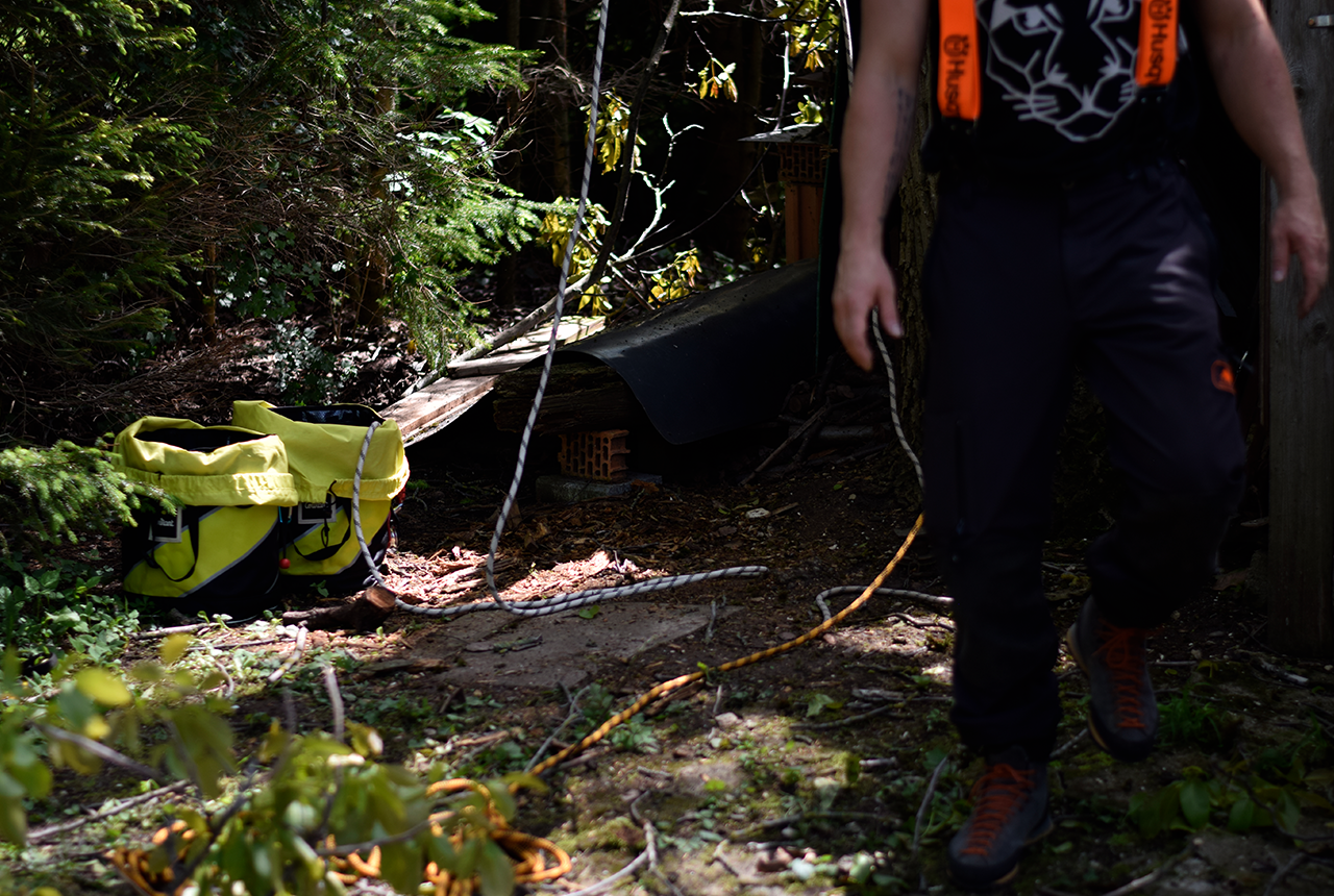 Mit der Seilklettertechnik können auch schwer zugängliche Bäume gepflegt oder auch gefällt werden. Die direkte Umgebung wird dabei geschont und der Lärmpegel auf ein Minimum reduziert.